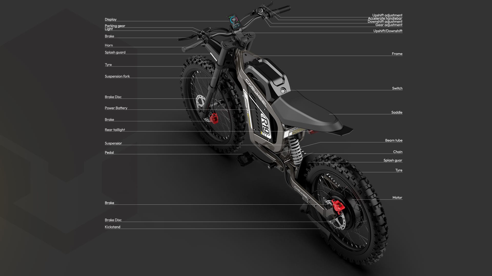 Place the NFC card that comes with the R19 below the 3.5" color display (the sensor is slightly below the display) to unlock the off-road electric bike. It should be noted that when the bike is just unlocked or the bike has been stationary for 3 seconds, the R19 will enter the neutral setting and display the "P" gear position, and the bike will not start when the throttle is twisted. You need to hold the brake handle tightly to resume the throttle.