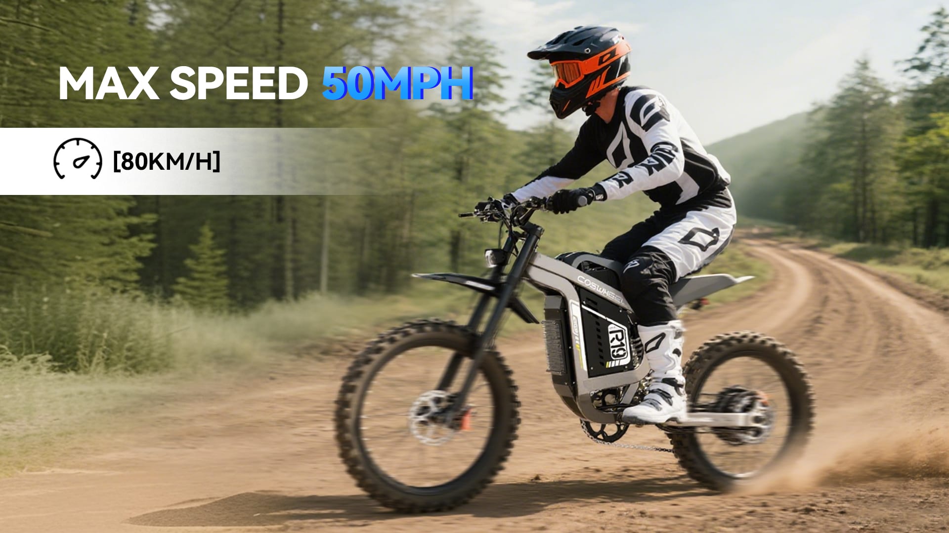 R19 is the most cost-effective 72V electric dirt bike launched by COSWHEEL. Peak 6000W (rated 3000W) rear drive motor, torque 120N.m, light throttle, maximum speed 50mph (80km/h). Compared with other brands of the same configuration products, the same performance, better price, and reliable quality, let you enjoy the adventure journey more easily.