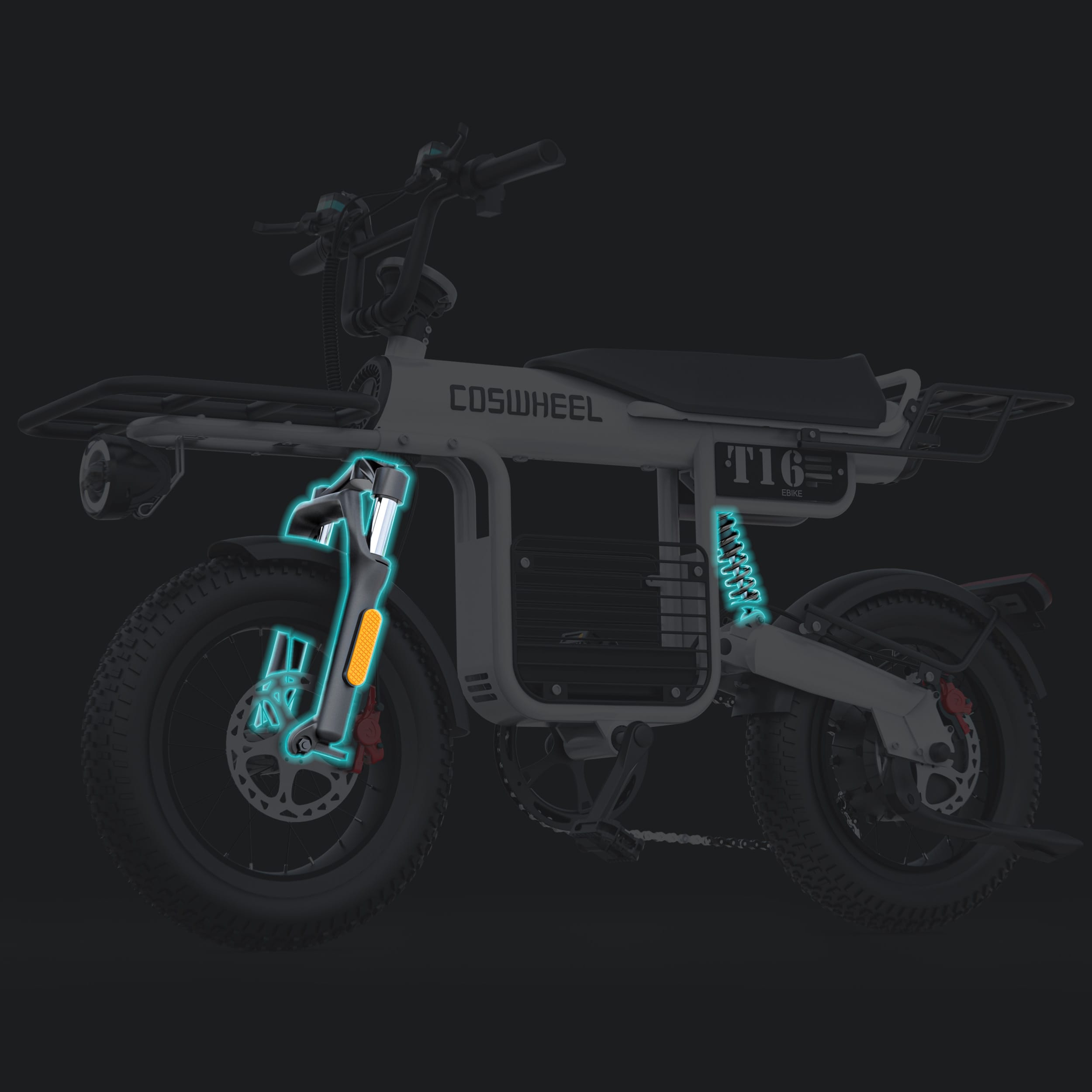 It uses Chaoyang 16" * 4" all-terrain tires, which have strong grip, adapt to various road surfaces, and can effectively lower the body, allowing more people to experience the joy of riding T16.