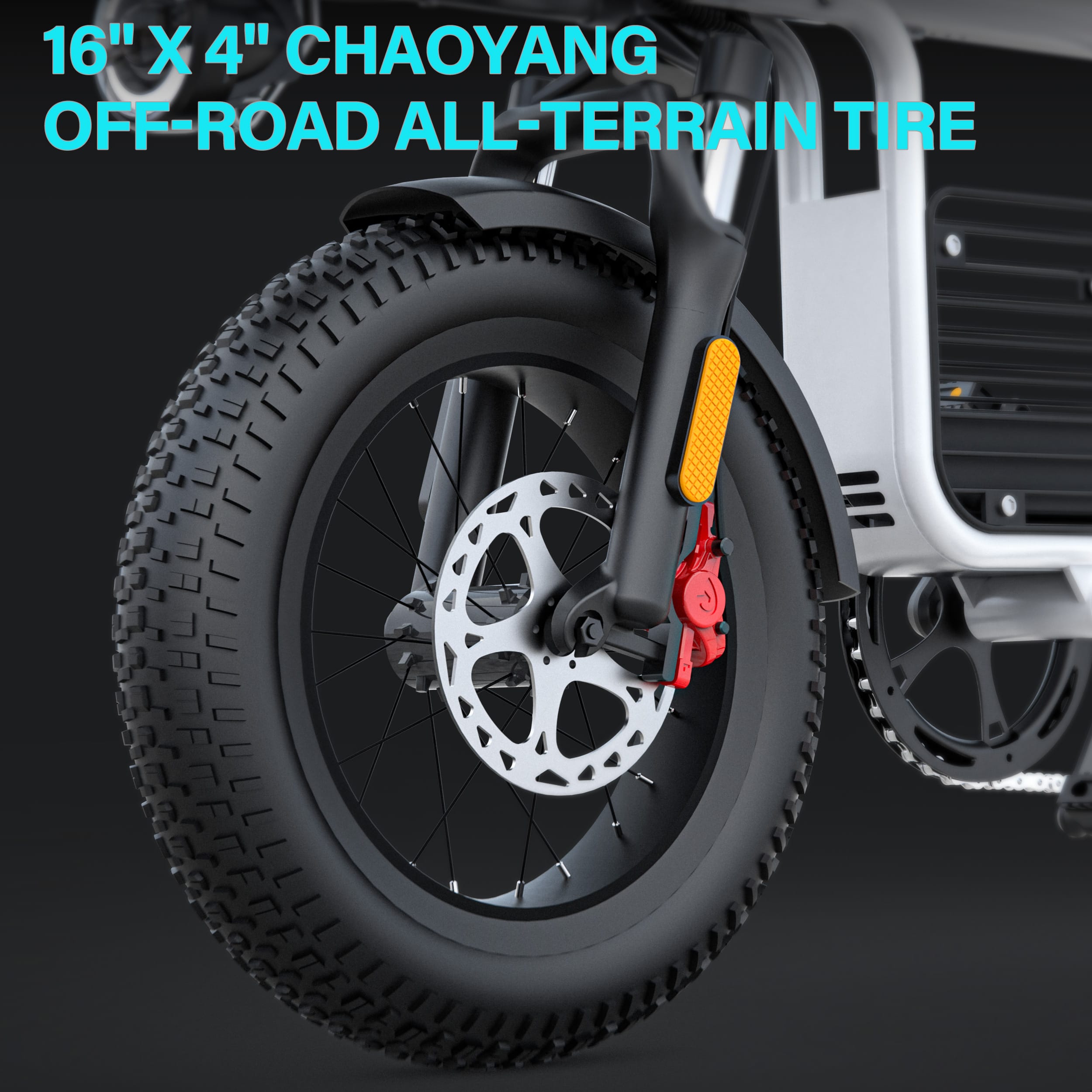 - Tires: ChaoYang All Terrain Tire 16" × 4.0" H5176 30TPI