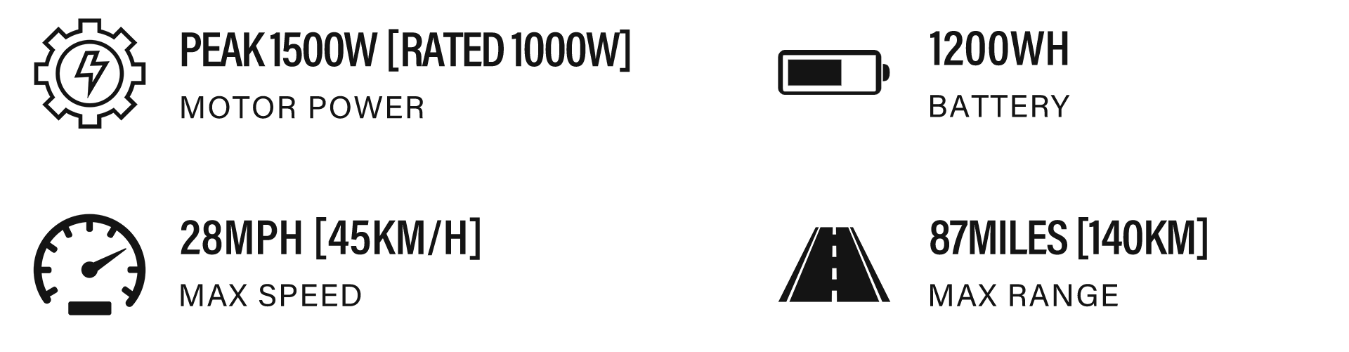 - Motor: 48V Peak 1500W (Rated 1000W) Brushless Rear Hub Motor 80N.m