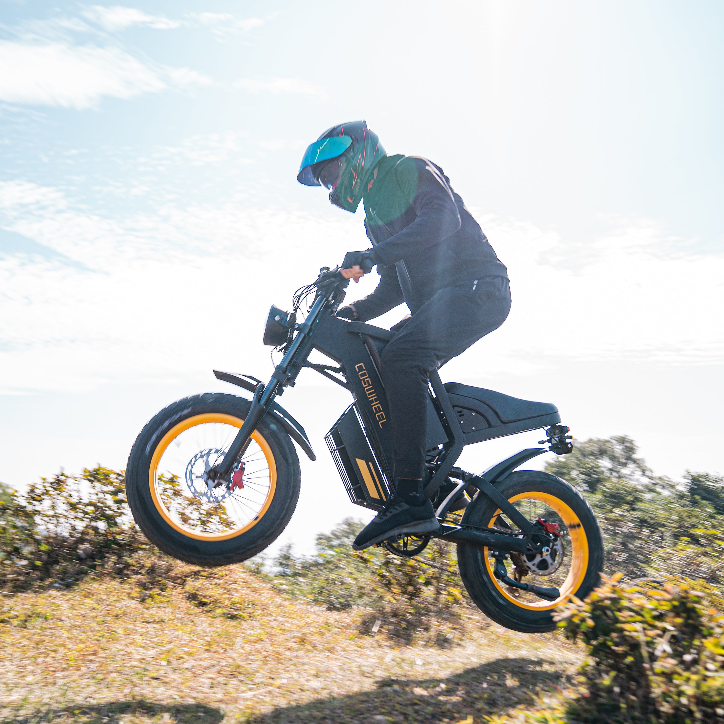 Both front and rear shock absorption, suspension travel 180MM, good resilience, so you are not afraid of any road.